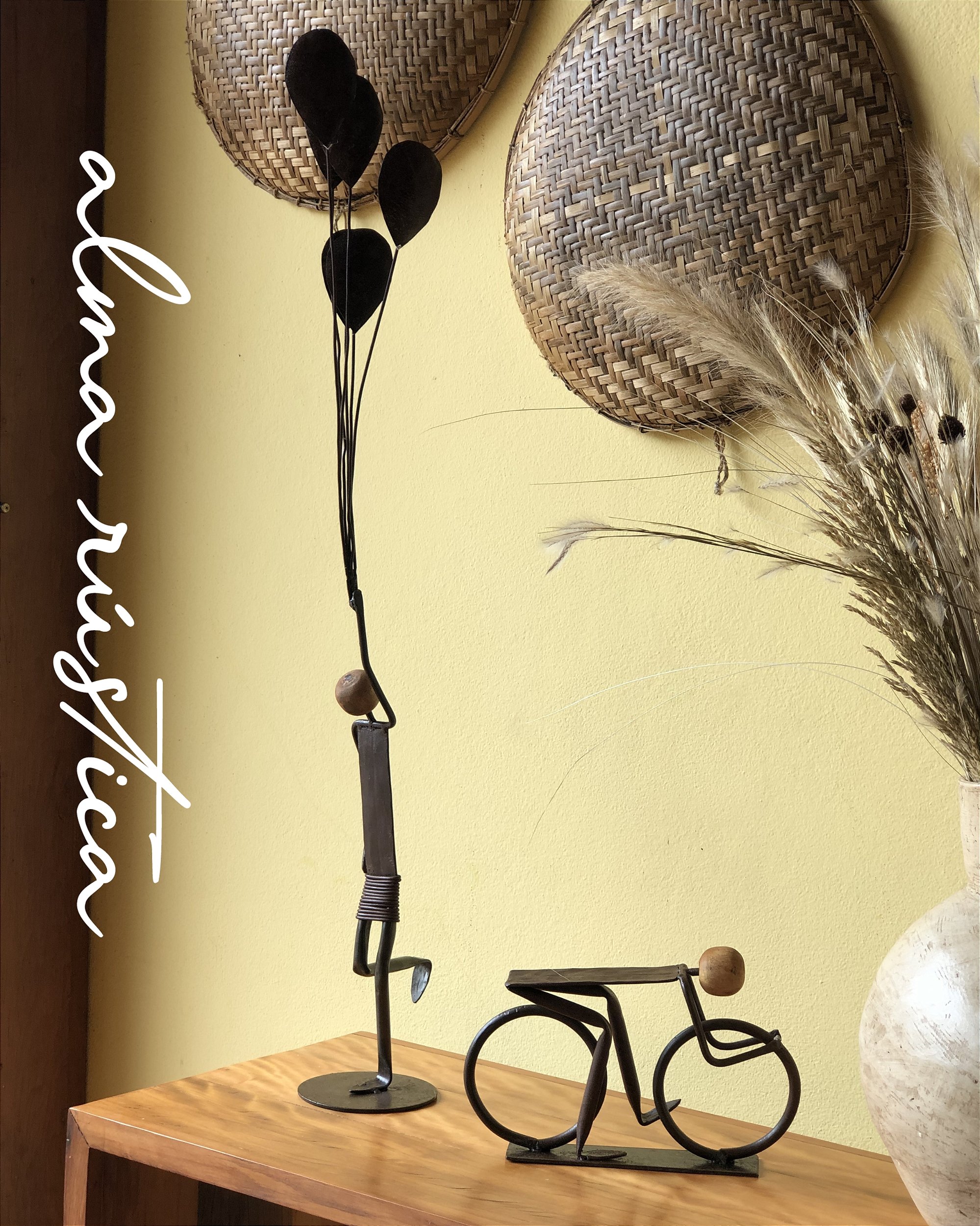 Esculturas Decorativas em Ferragem com Detalhes em Madeira – Peças Artesanais Autorais